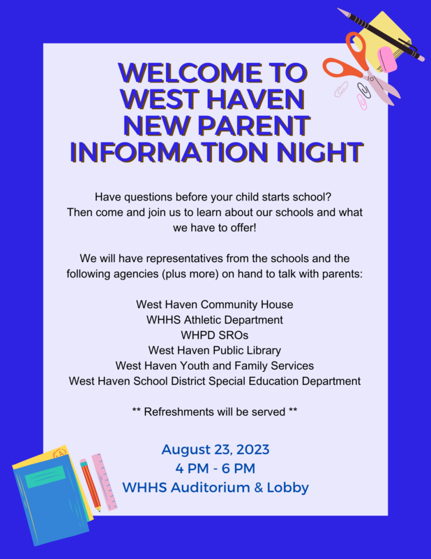 New parents, welcome to West Haven! Please see the flyer below regarding an important event before the start of school